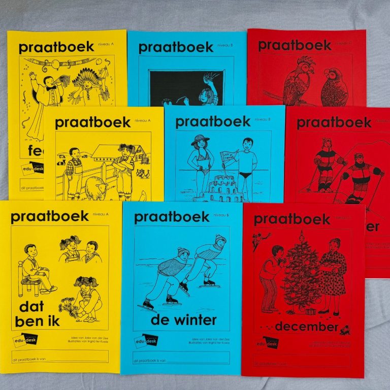 Praatboeken is een praktisch trainingsprogramma voor de basisvaardigheden spreken en luisteren. De serie bevat 15 thema’s die aansluiten bij de belevingswereld van kinderen. De praatboeken zijn in drie niveaus uitgewerkt.