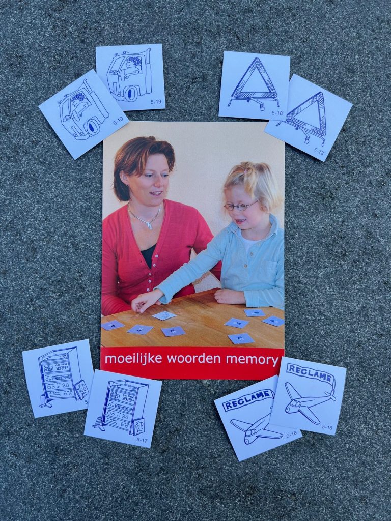 Memory spel waarbij de spelers worden uitgedaagd de woorden te benoemen die op de kaartjes staan. Binnen het spel zijn kaartjes op 5 niveaus, variërend in aantal lettergrepen. Deze niveaus zijn los van elkaar of gecombineerd te gebruiken.